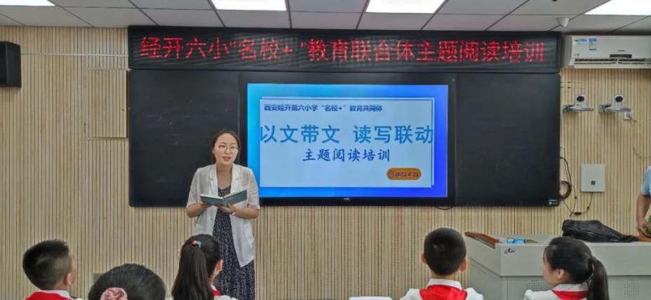6月21日下午,西安经开区第六小学“名校+”教育共同体进行了主题阅读培训活动。本次活动采取线上线下相结合的方式,经开六小和西张市小学全体语文教师参加了此次活动,活动由教研组长主持。
